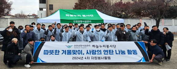 인천공항시설관리(주) 하늘누리봉사단은 12월 20일 인천 중구 북성동 일대에서 ‘따뜻한 겨울맞이, 사랑의 연탄 나눔 활동’을 개최했다고 밝혔다.
