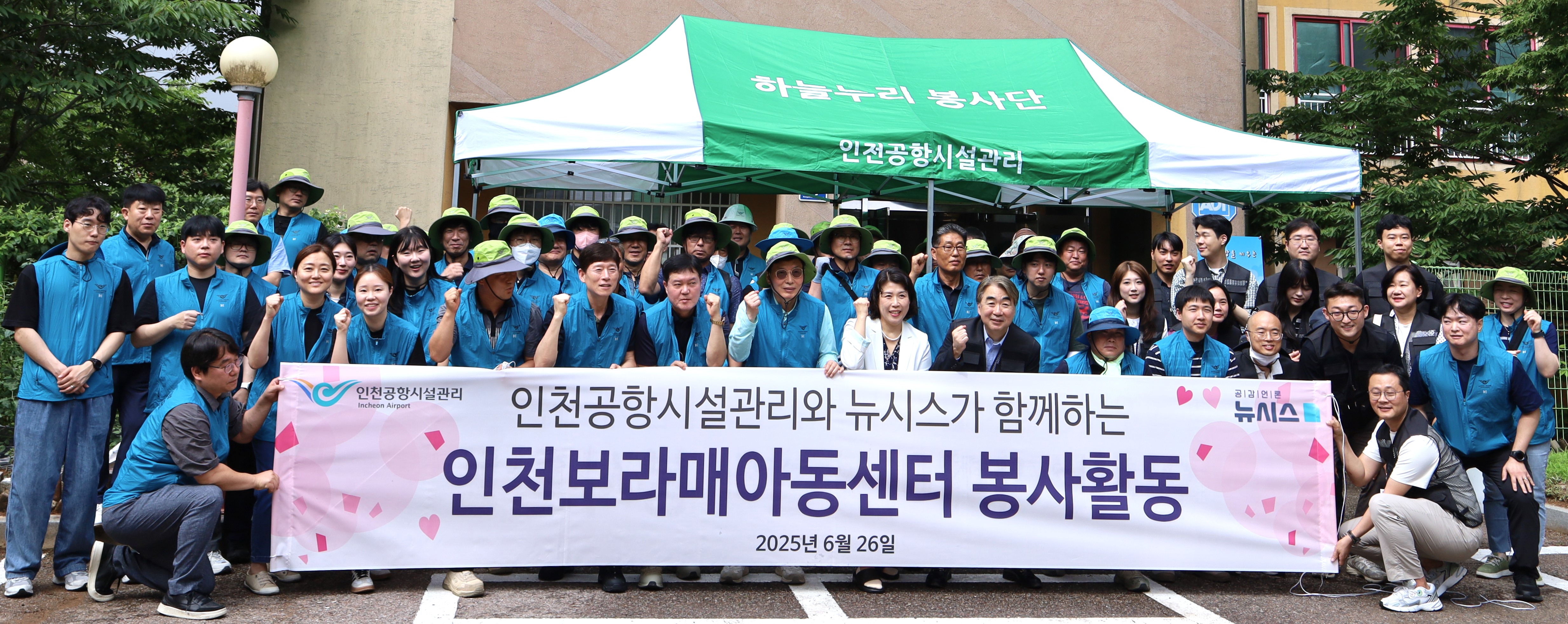 뉴시스 임직원 봉사단과 인천공항시설관리㈜ 하늘누리봉사단이 26일 인천보라매아동센터를 찾아 시설 개보수 봉사활동을 실시했다.